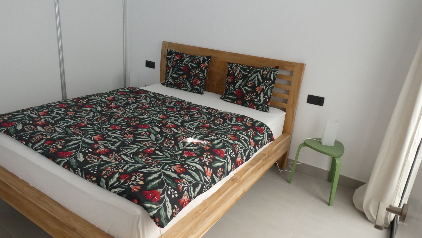 Das Apartment ist über eine breite Treppe zu erreichen. Es hat zwei Schlafzimmer mit zwei großen Doppelbetten (160x200). Beide Zimmer sind mit einer Patio verbunden und haben somit Zugang zur Frischluft. In der Patio steht eine wunderschöne Palme. Die Wohnküche, die mit einem Top Herd und einer modernen Kühlschrank-/Gefrierschrankkombination ausgestattet ist hat einen kleinen Balkon, der ideal für die kurze Auszeit ist. Das Badezimmer ist klein aber fein mit begehbarer Dusche und Frischluftzufuhr. Direkt vor der Haustüre ist die bekannte französiche Bäckerei El Goloso. Vom Balkon kann die regelhaft bestehende lange Schlange abgepasst werden, so dass die Wartezeit für einen tollen Kaffee oder ein Himbeertörtchen kurz bleibt.